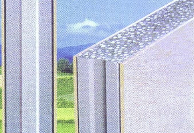其工藝獨(dú)特,主要原料以高強(qiáng)水泥或氧化鎂為膠凝料,以粉煤灰工業(yè)廢渣、草秸、木屑、珍珠巖等為填料,以玻纖布、網(wǎng)絡(luò)布增強(qiáng)。